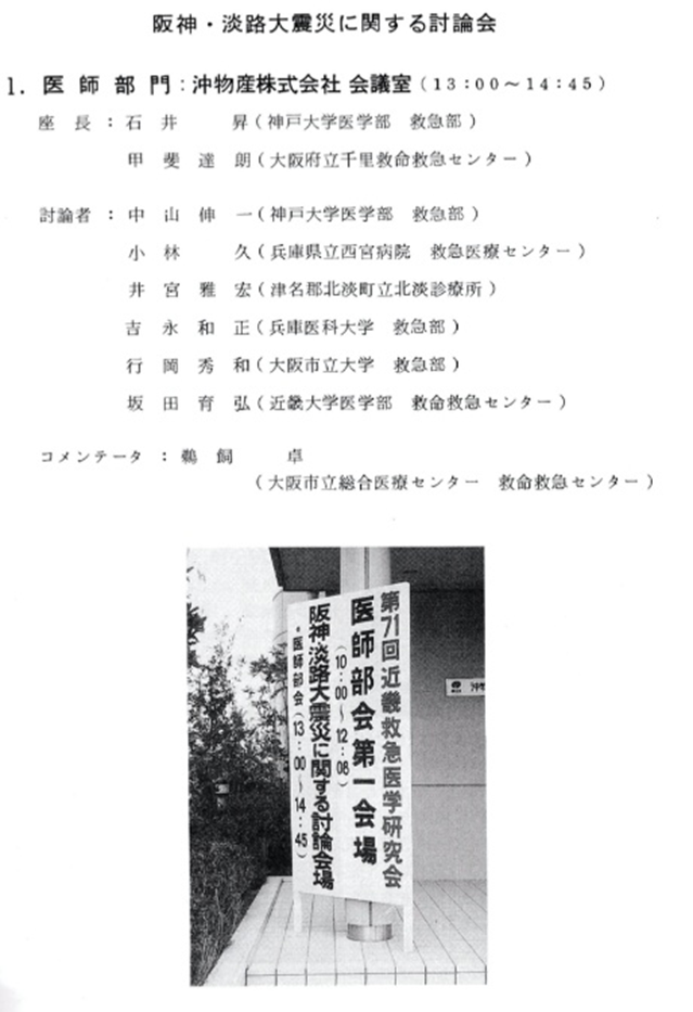 約2ヶ月経過した3月25日に淡路島の津名にあるしずかホールで「第71回近畿救急医学会」が開催された。そこで緊急パネルディスカッションで、兵庫県をはじめ近畿地方の救急医を中心にホットな意見交換がなされた。